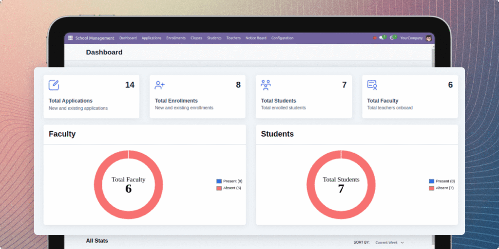نقدم لكم نظامًا متكاملاً لإدارة المدارس والجامعات مبنيًا على منصة Odoo، يهدف إلى تحسين كفاءة العملية التعليمية والإدارية في المؤسسات الأكاديمية من خلال أتمتة المهام اليومية وتبسيط التواصل بين جميع الأطراف