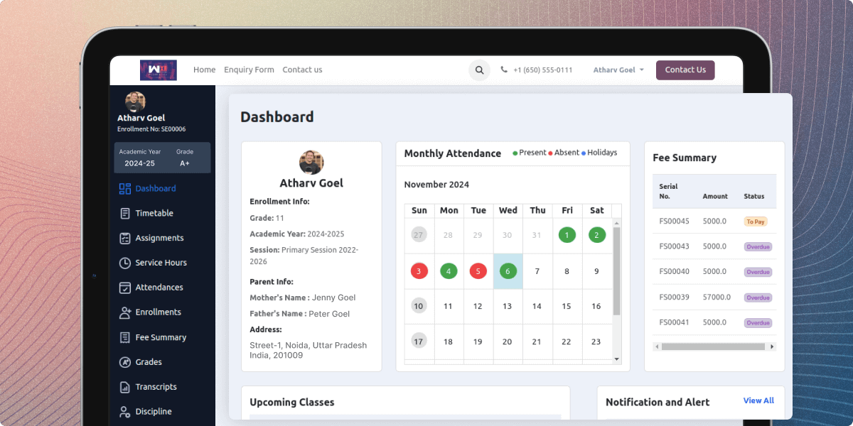 توفير واجهة مخصصة للمعلمين لإدارة جداولهم الدراسية، إدخال خطط الدروس، رصد درجات الطلاب، وتسجيل الواجبات، كل ذلك من نظام مركزي واحد