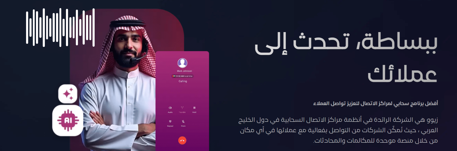 اربط منشأتك بـ “زيوو” (Ziwo) لإدارة المكالمات، والواتساب، والرسائل القصيرة بسهولة، دون الحاجة لأجهزة تقليدية أو بنية تحتية معقدة.